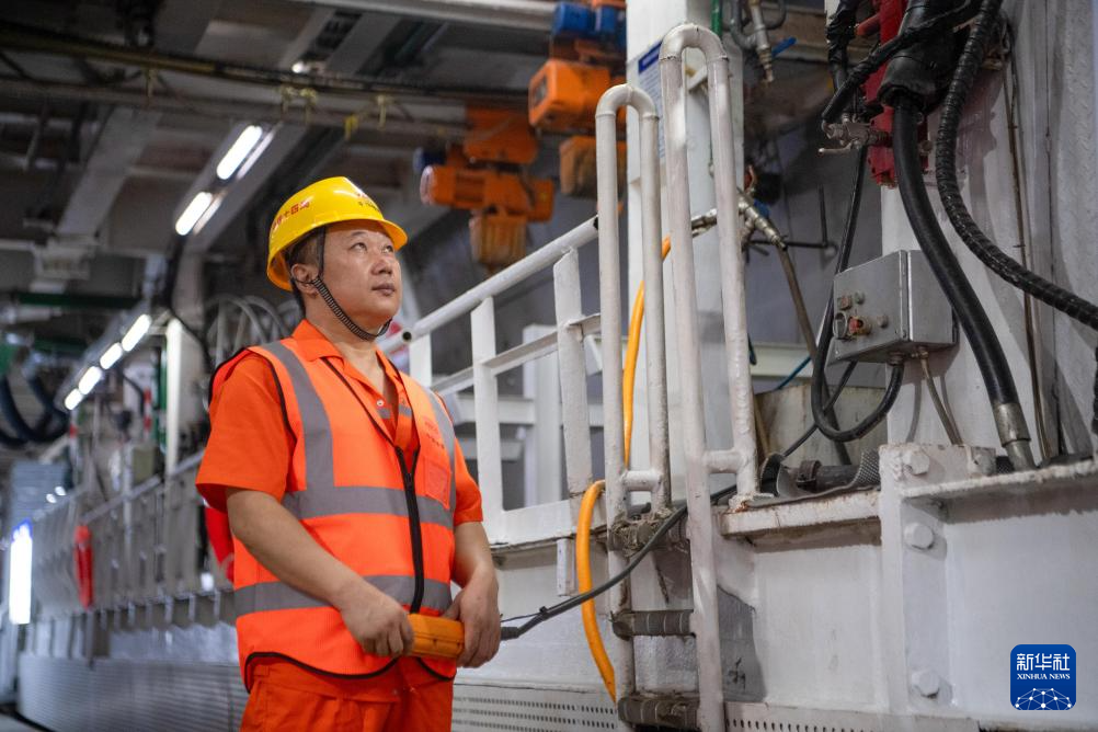 9月25日,工人在Chongqing-Xiamen高速铁路上的Chongqing Caaimana Yangtze河铁路隧道建筑工地工作。 9月25日,重庆的Chongqing Caaiyuanba Yangtze河铁路隧道的盾牌部分成功完成了。 Chongqing Caaiyuanba长江铁路隧道是整个重庆 - Xiamen高速线的主要控制项目。它位于重庆的Yuzhong区和Nan'an区。这是一条单孔双线高速火车隧道,总长度为11,942米。新华社的照片记者唐Yi