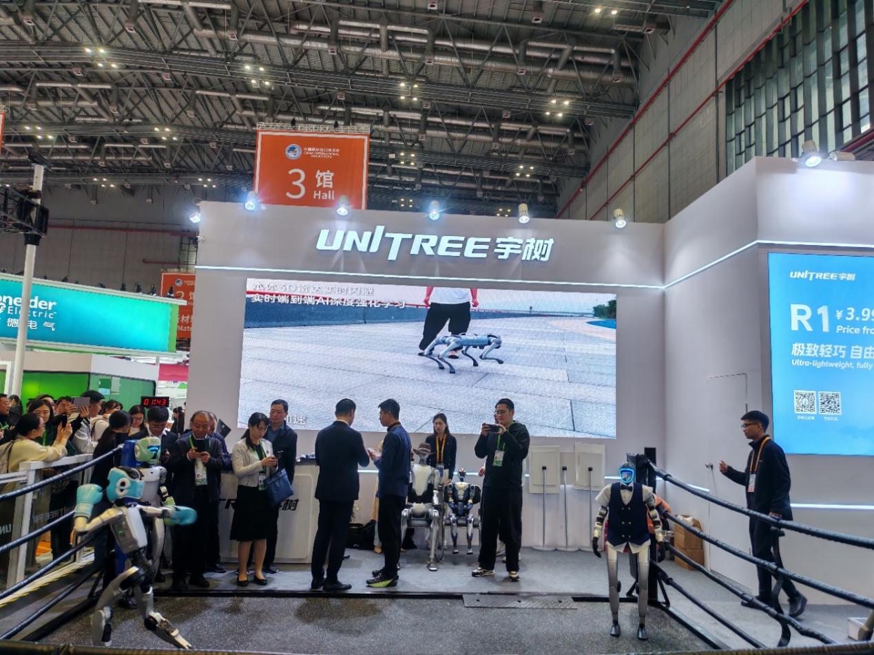 中国经济网上海11月8日电(记者杨秀峰)第八届中国国际进口博览会(简称“进博会”)于11月5日至10日在上海举行。御数科技携多款机器人产品亮相,其中包括最新发布的R1、H2仿人机器人以及A2四足机器人,充分展示了智能机器人领域的最新技术成果和应用潜力。走进玉树科技展位,两台G1格斗人形机器人正在酣畅淋漓地进行一场“拳击比赛”。该机器人搭载了自主研发的新型高响应动平衡算法和集成驱动技术,能够在高速对抗中保持极致的运动稳定性。现场,G1不仅妥妥地展示了stra等专业格斗动作不仅能打出右拳、上勾拳、侧踢,而且在受到外力影响时也表现出了出色的独立平衡恢复能力。即使不小心摔倒,他也会在几秒钟内迅速爬起来,重新加入“战斗”。他拟人化的敏捷和稳健的表演赢得了观众的阵阵掌声。玉树科技相关负责人表示,未来,玉树将继续深化全球合作,不断拓展机器人在多样化场景下的落地应用,以创新技术更好地服务人类生活。